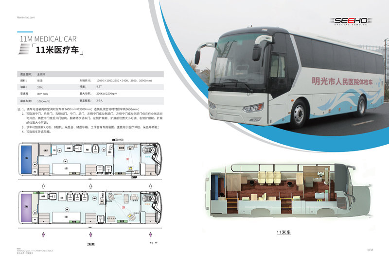 顯浩專用車生產(chǎn)的體檢車均選用一線品牌車(宇通、金龍、金旅)實(shí)用、先進(jìn)、布局合理、操作方便、駕乘舒適。 體檢車長(zhǎng)有6米、7米、8.2米、9米、10.5米、11米、12米可選。