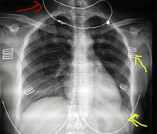 缺陷:雙側(cè)胸鎖關(guān)節(jié)不對(duì)稱,且有手機(jī)顯影。