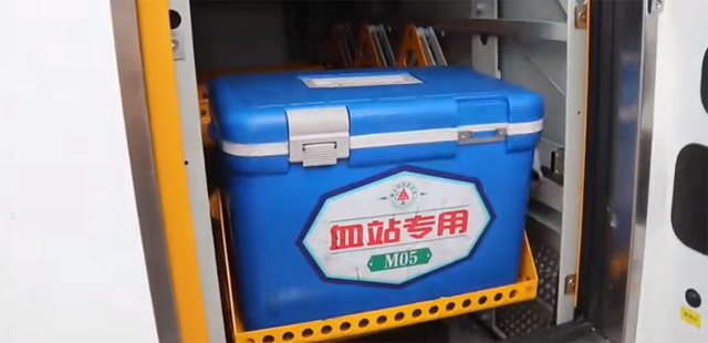 駕駛室配備車載冷庫啟動,及設(shè)置裝置,啟動車輛后,冷系統(tǒng)自動啟動也可通過手動按鍵,啟動制冷并設(shè)定指定溫度。駕駛室后方設(shè)有溫度采集器,當冷庫內(nèi)溫度異常時,溫度監(jiān)控模塊會發(fā)出鳳鳴報警;同時設(shè)有紫外線消毒燈定時模車輛夜間休息時,將自動啟動消殺模式。駕駛室后方儲存空間,可放置物品。